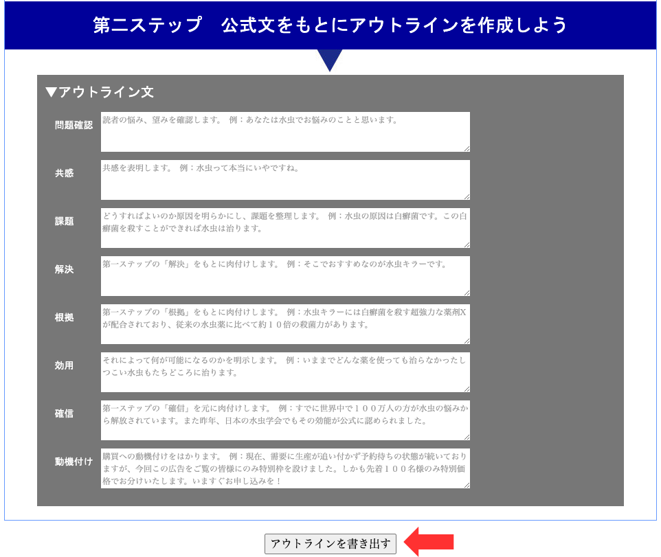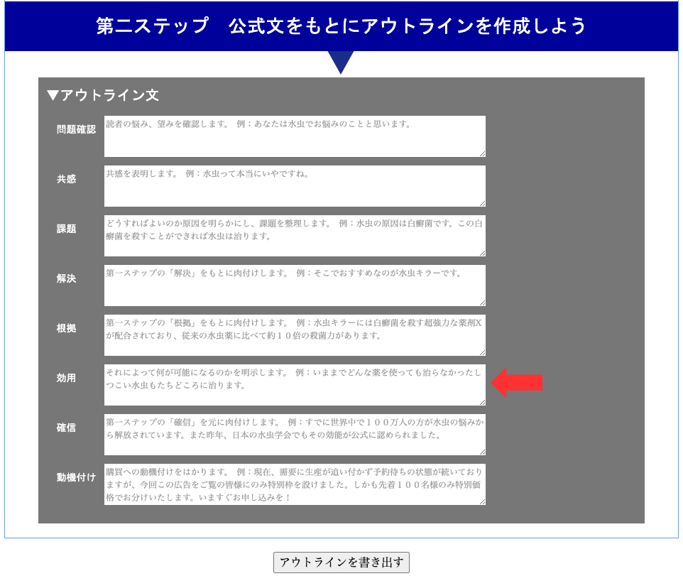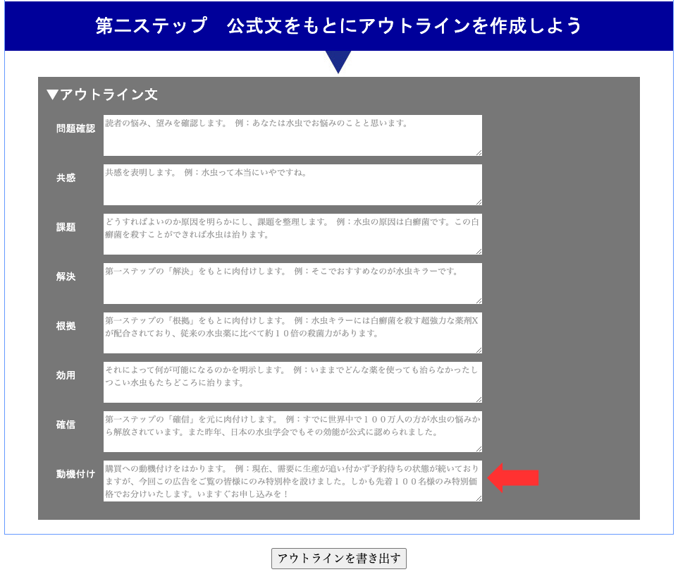 入力したら最後に「アウトラインを書き出す」を押してください。